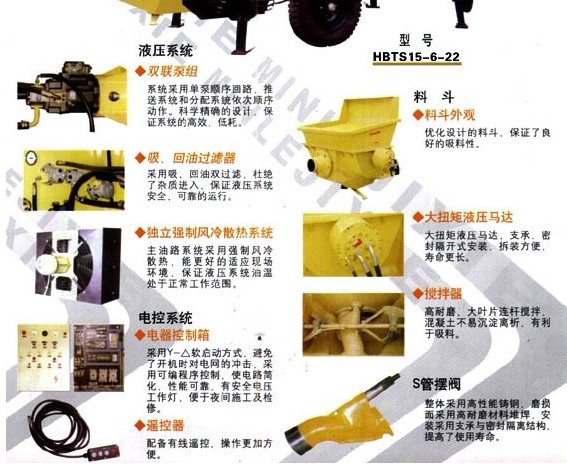 電機(jī) 主油泵(現(xiàn)在一般用韓國(guó)川崎的進(jìn)口主油泵) 電磁閥(國(guó)內(nèi)用華德的多) 料缸 主油缸(國(guó)內(nèi)品牌好的是協(xié)力油缸) 潤(rùn)滑泵 (6路潤(rùn)滑泵)風(fēng)冷(冷卻液壓油的,也有廠家用水冷,水冷工地需要接水,就是這個(gè)麻煩一些)電控柜 (PLC歐姆龍的比較好點(diǎn))